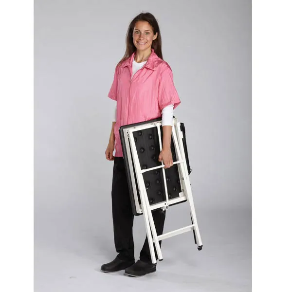 میز کا وزن تقریباً 26 پاؤنڈ ہے، استحکام اور پورٹیبلٹی کو متوازن کرتا ہے۔
